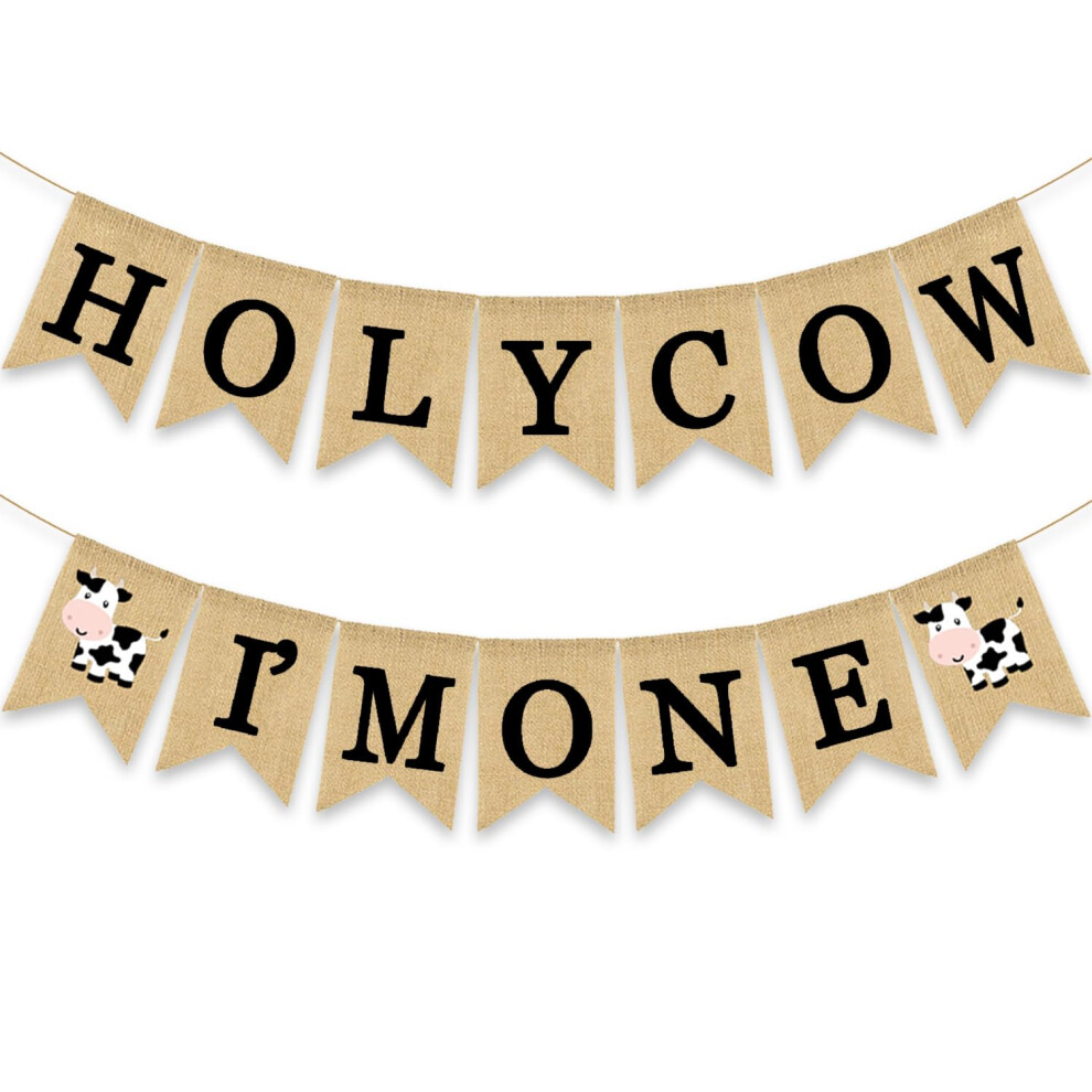 Holy Cow I'm One Banner Farm 1st Birthday Party Decoration Barnyard Burlap Garlands Western Boy Girl First Birthday Supplies Black
