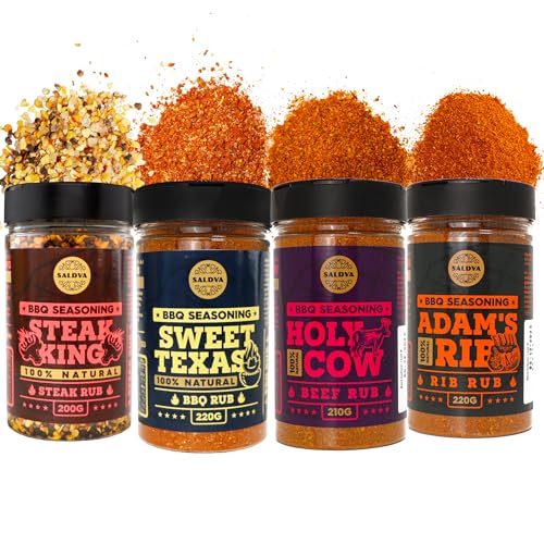 Meat Lovers Selection of Premium BBQ Seasonings - Holy Cow, Sweet Texas, Steak King & Adam's Ribs BBQ Rubs | Pack of 4 | 100% Natural | Spice Gift For Foodie