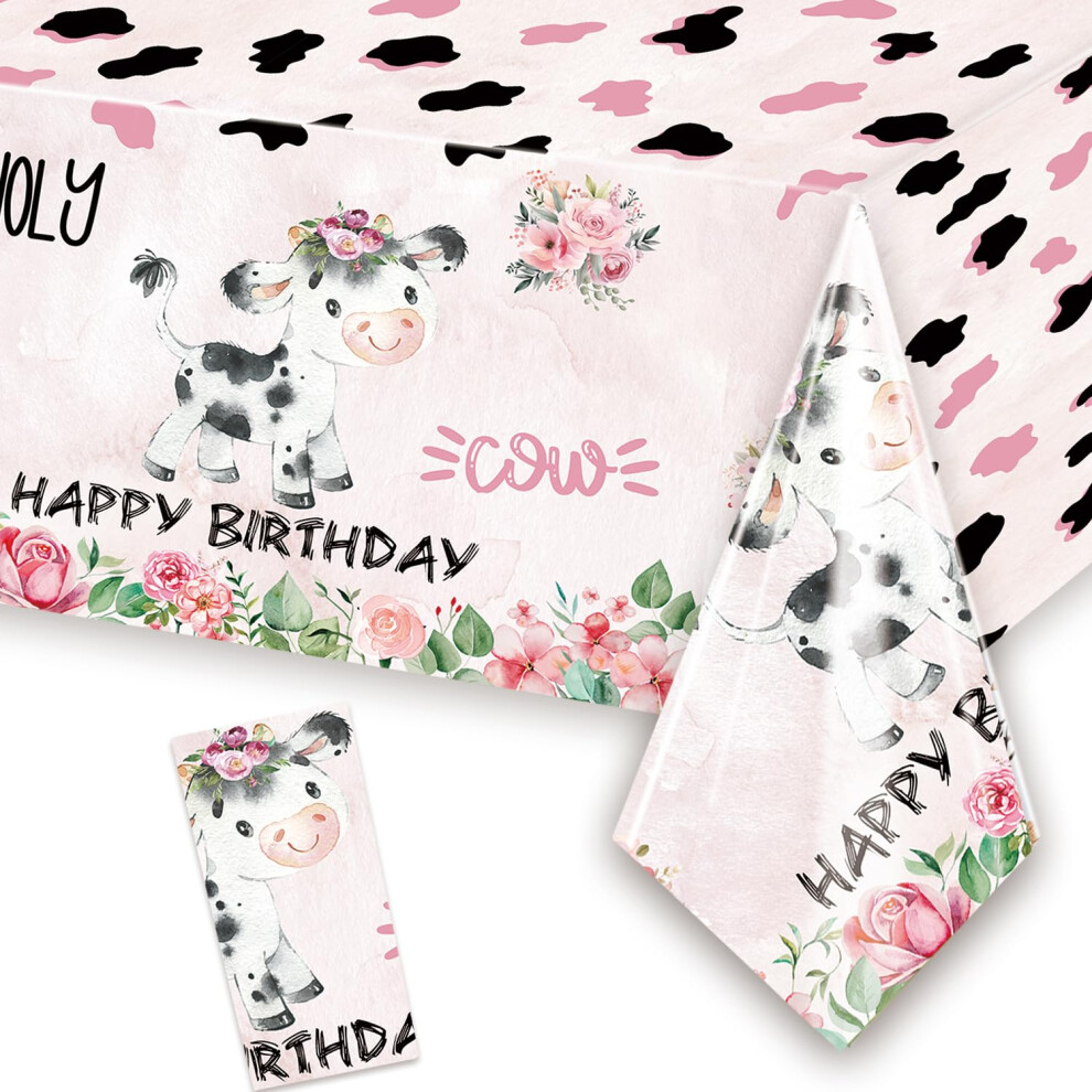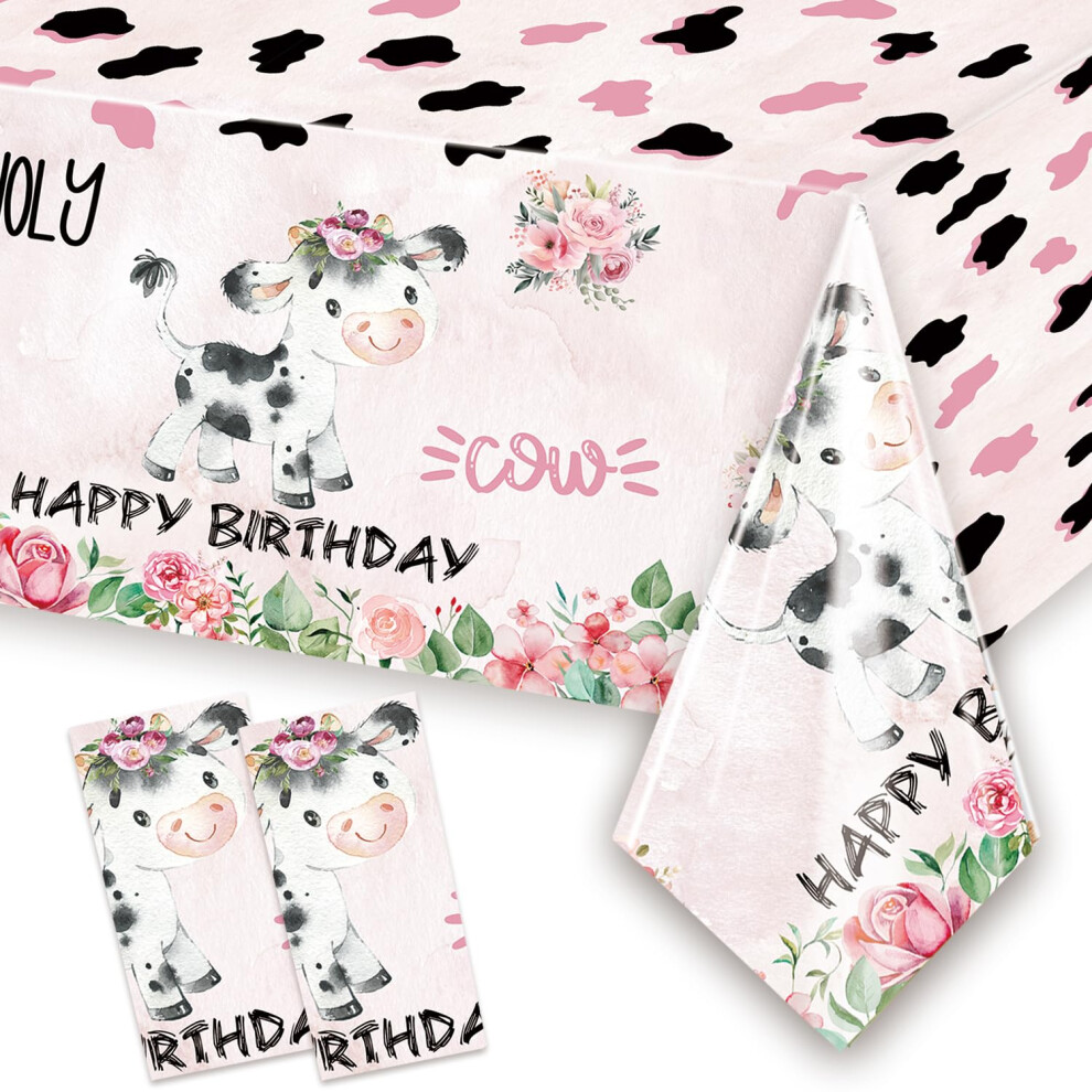 Letromp 2 Pcs Holy Cow Birthday Party Tablecloth 54'' x 108'' Pink Cow Print Table Covers for Farm Animals Cow Theme Girls Baby Shower 1st 2nd 3rd 4th
