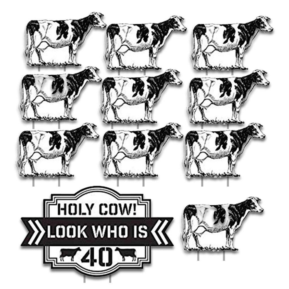 VictoryStore Yard Decorations: Birthday Yard Decoration Holy Cow! Look Who Is 40 (Set of 11 signs with Stakes)