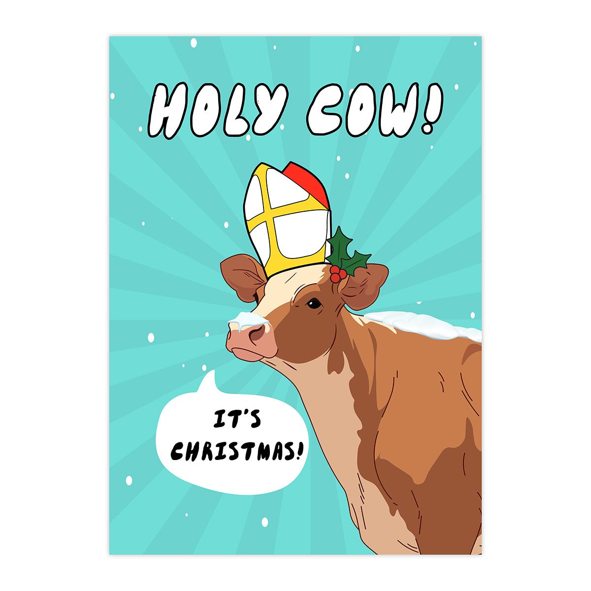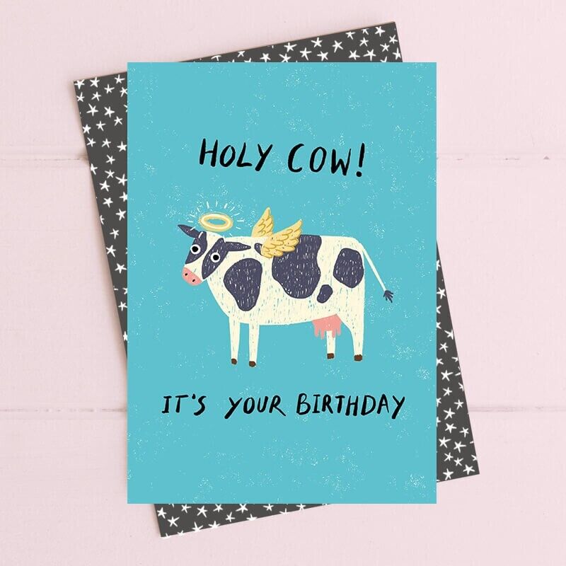 Holy Cow Birthday Card - Funny Illustrated Cute Design Greeting Card