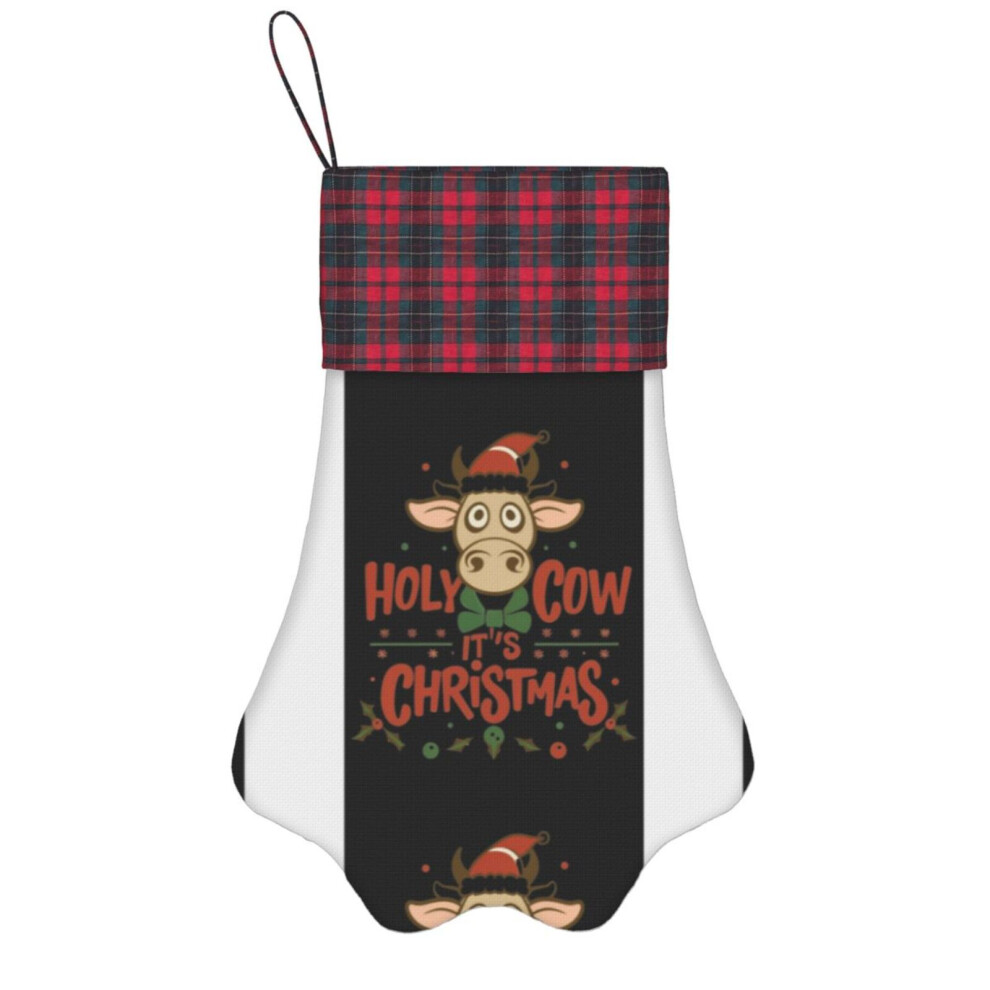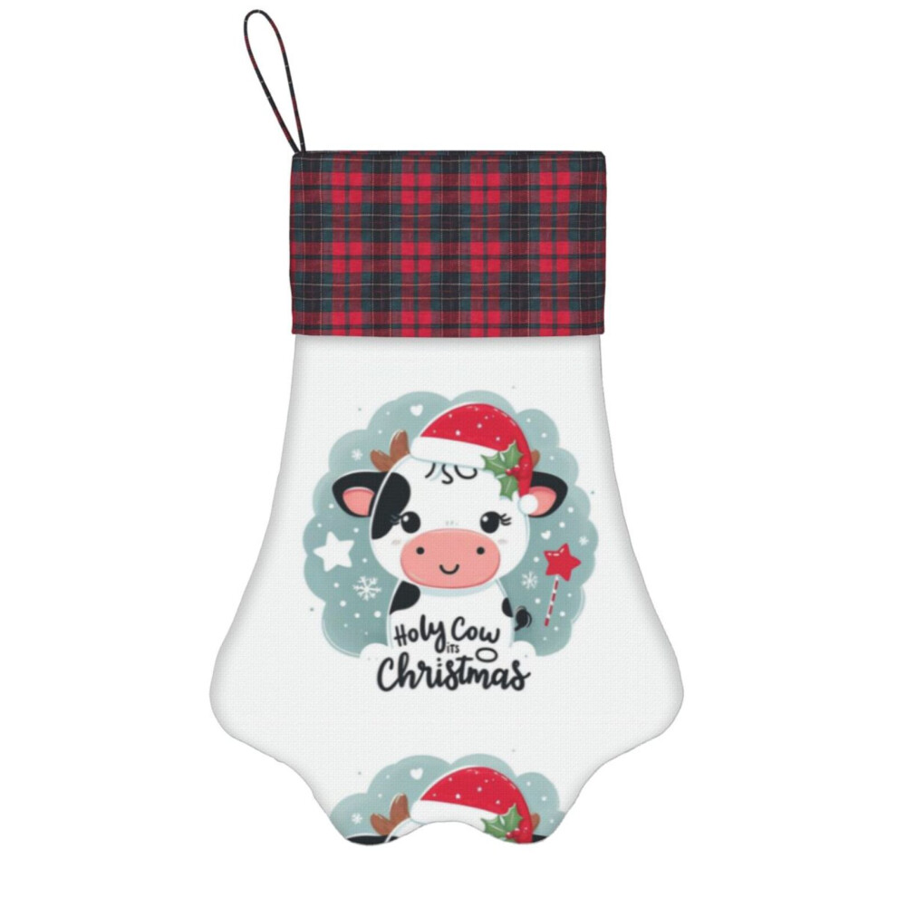 (Cute 'Holy Cow Its Christmas' Christmas Cow=528) Paw Christmas Stockings Buffalo Tartan Plaid for Cats Dogs Pet Hanging Xmas Tree Decorations