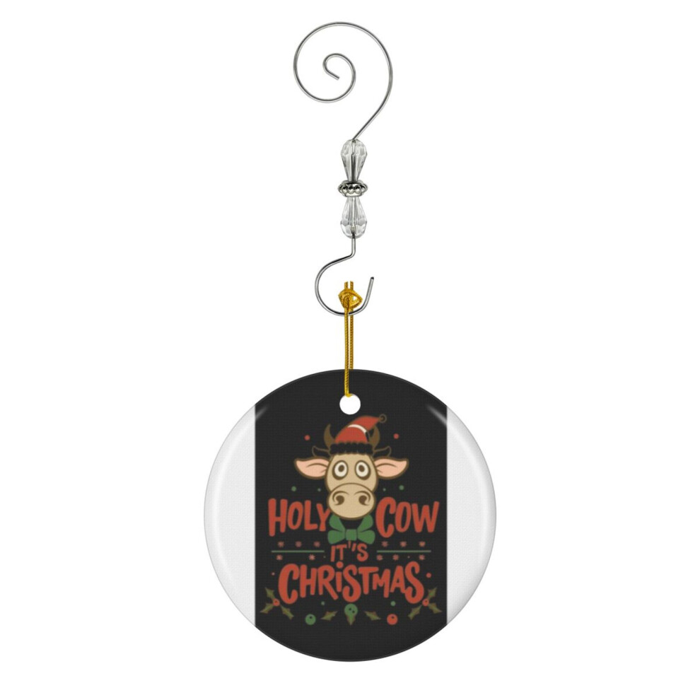 (Christmas Cow Vector - 'Holy Cow It's Christmas'_3357) Christmas Ornaments Ceramic with Crystal Hook Xmas Handmade Tree Decorations Keepsake Gifts S
