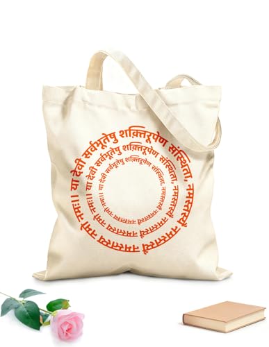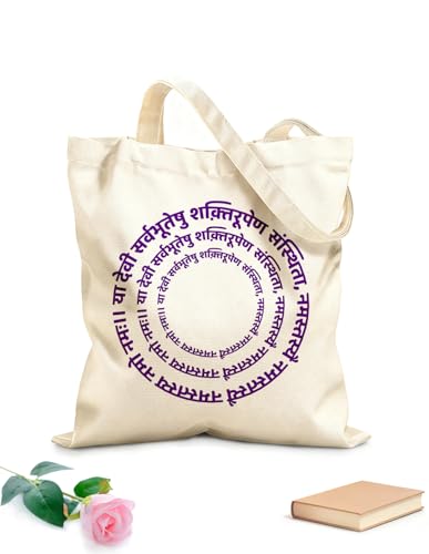 AILOONG Customizable pattern canvas bags Chanting Shakti'mantra in Sanskrit to pay homage to the Goddess Vishnumaya 340g/m² thick fabric Matches clothing