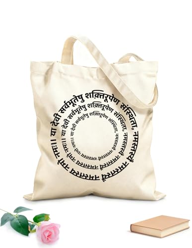 AILOONG Customizable pattern canvas bags Chanting Shakti'mantra in Sanskrit to pay homage to the Goddess Vishnumaya 12 oz thick fabric Matches clothing 35x40cm Large