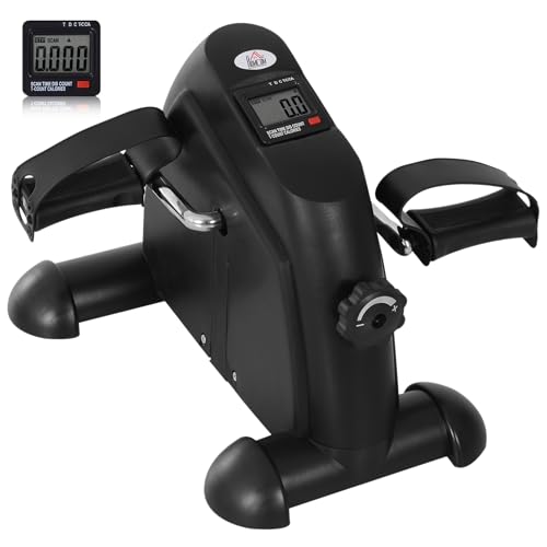 HOMCOM Mini Exercise Bike, Portable Pedal Exerciser, Under Desk Bike with LCD Display for Legs and Arms Training, Black