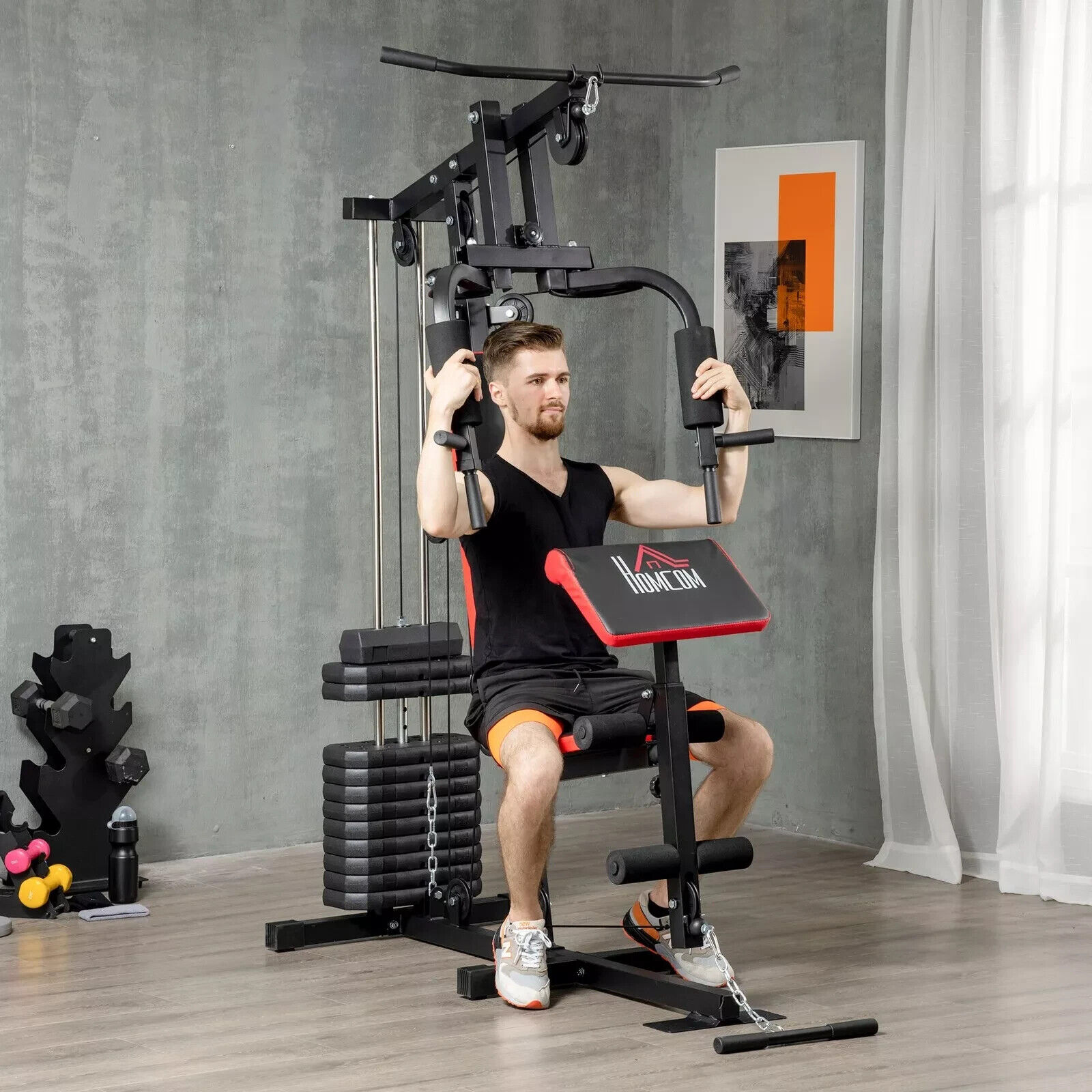 HOMCOM Multi Gym Equipment, Multifunction Home Gym Machine with 45kg Weight Stack, for Lat Pulldown, Leg Extensions, Preacher Bicep Curls, Triceps Pulldowns, Chest Press, Strength Training