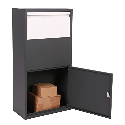 DWD® Parcel Drop Box Large Stylish Grey with White Hatch Door Outdoor Weatherproof Secure Mail Premium Parcel Lockable Postbox H 82 x L 44 x W22 cm Save your time waiting in, Never miss parcels again