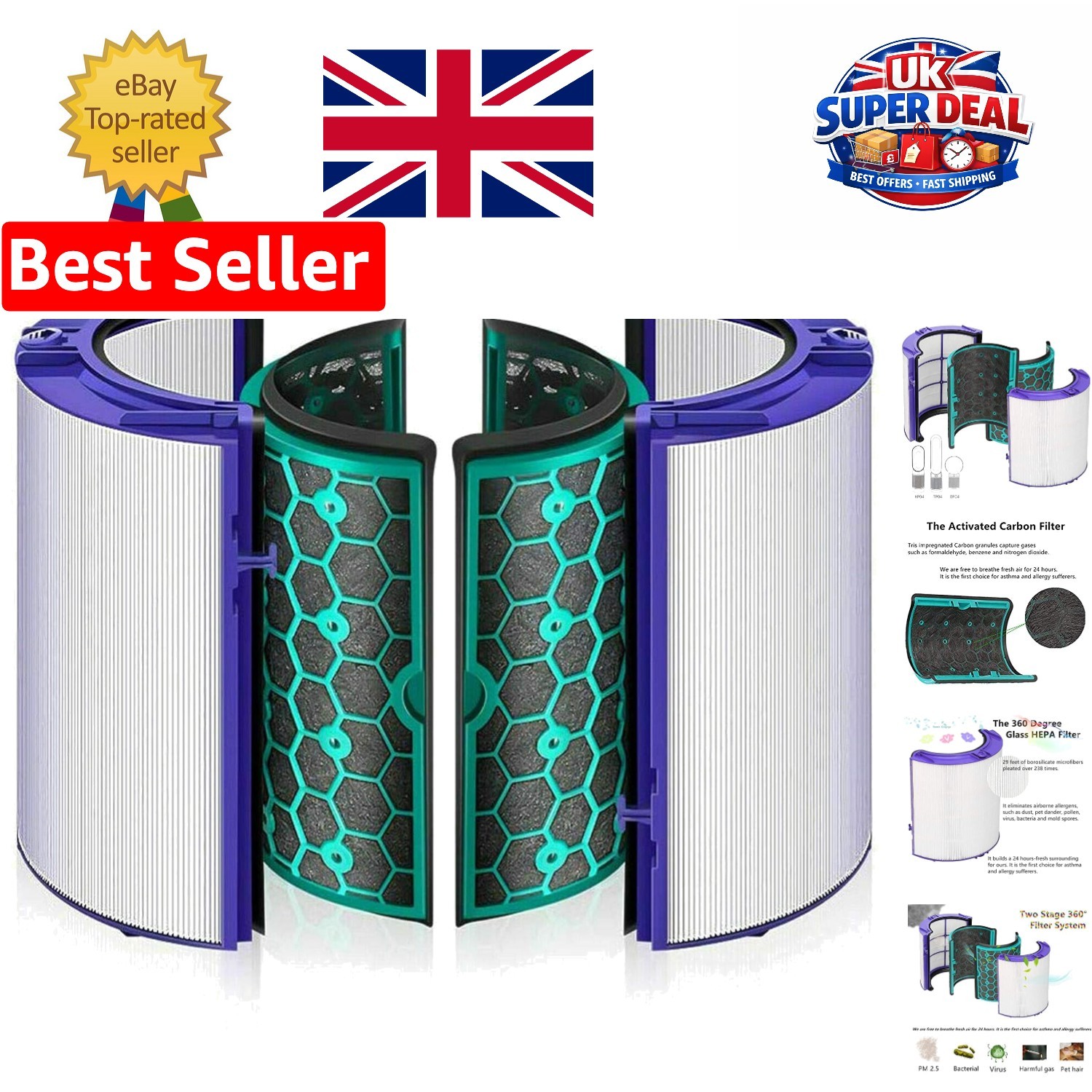 Ultimate Home Air Purifier Replacement: 360° Glass HEPA & Carbon Filter - 12yrs