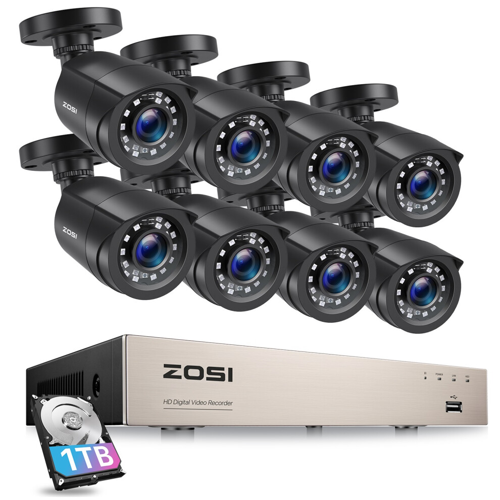 ZOSI 8CH H.265+ 5MP DVR Outdoor 1080P CCTV Home Security Camera System 1TB HDD