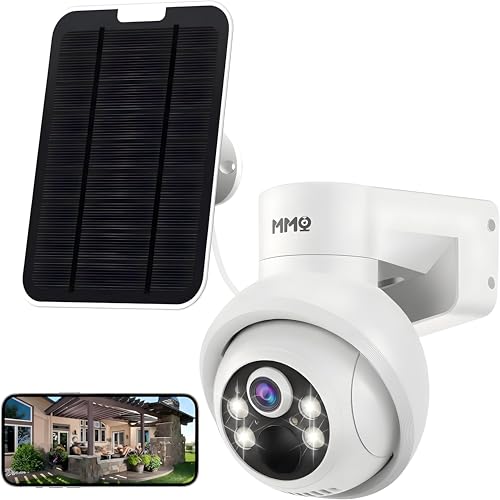 MMQ Solar Security Cameras Wireless Outdoor, 4MP PTZ Powered Security Cameras for Home, Security Camera Outside with PIR Motion Detection, Color Night Vision, Two Way Audio, Compatible with Alexa