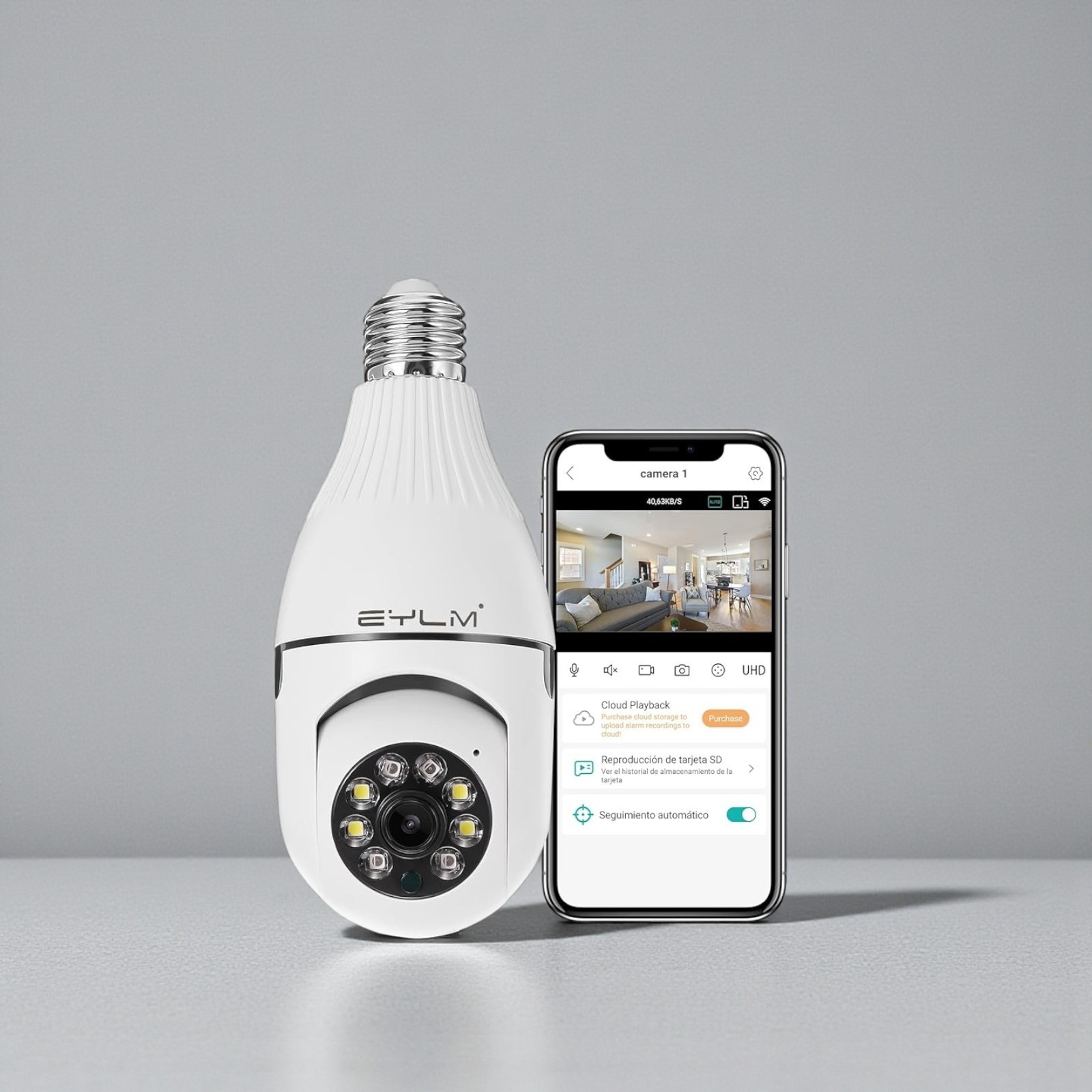 Dual Lens Three Screen 8MP Smart Home Wireless Wifi E27 Cameras Mini Cctv Camera