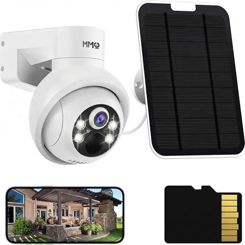MMQ Solar Security Cameras Outdoor, 4MP PTZ Solar Panel for Security Cameras, Battery Powered Wireless Cameras for Home with 128GB Card, PIR Motion Detection, Color Night Vision, Work with Alexa