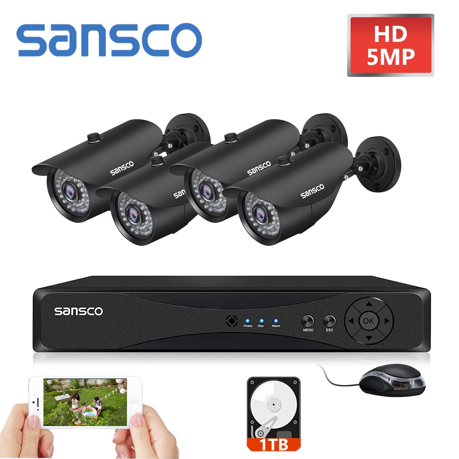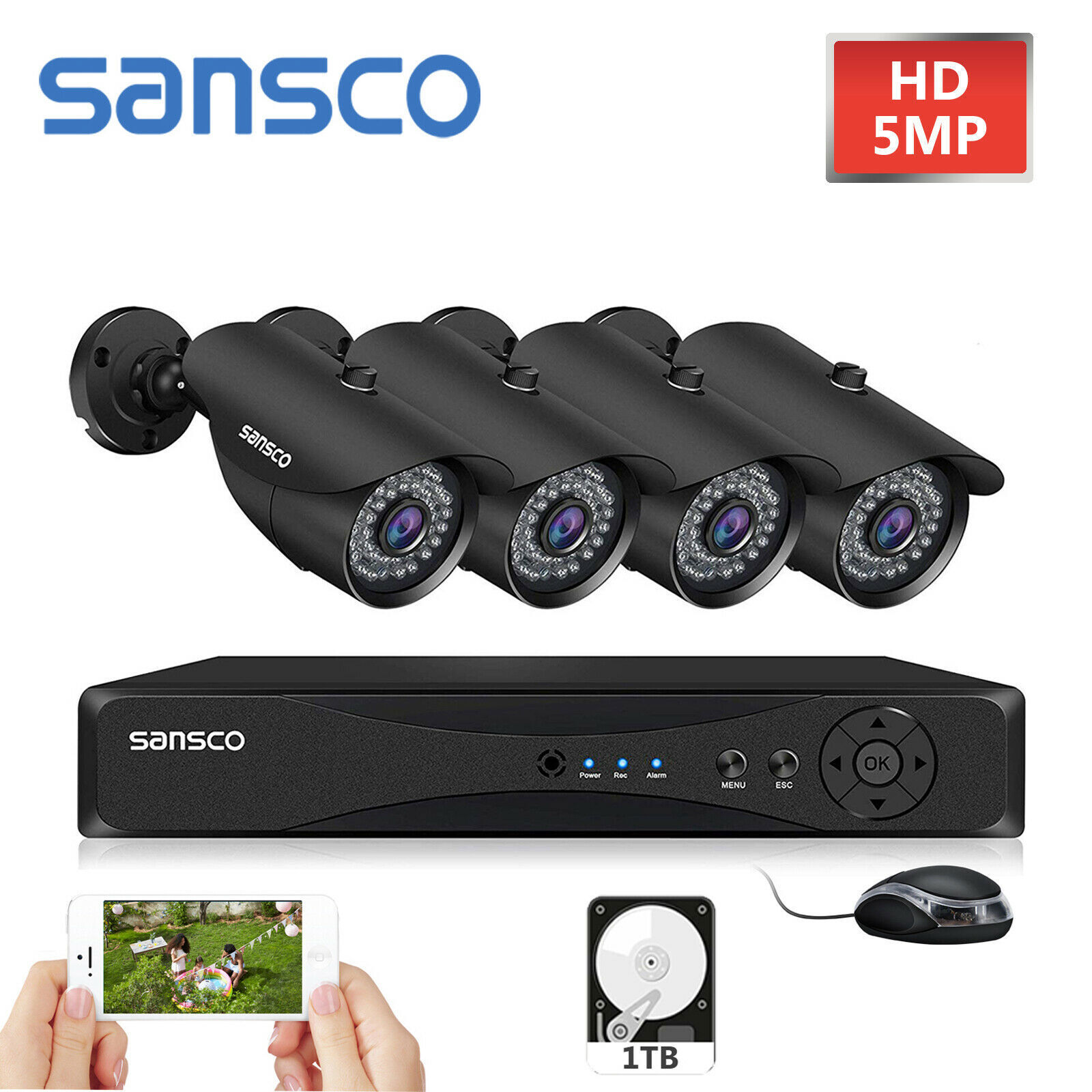SANSCO HD 5MP CCTV Home Security Camera System Kit 8CH DVR Night Vision 1TB HDD