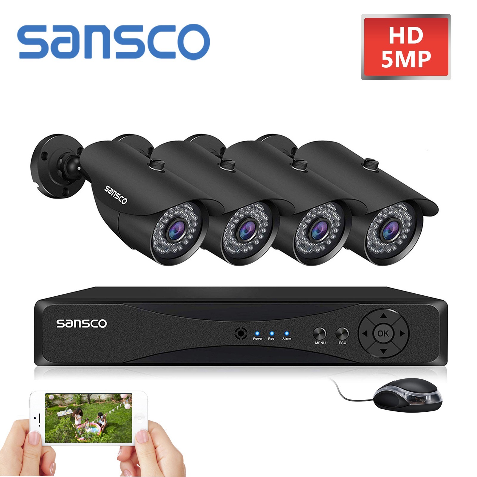 Sansco 5MP HD CCTV Security Camera System Kit 4CH HDMI DVR Home Outdoor IR