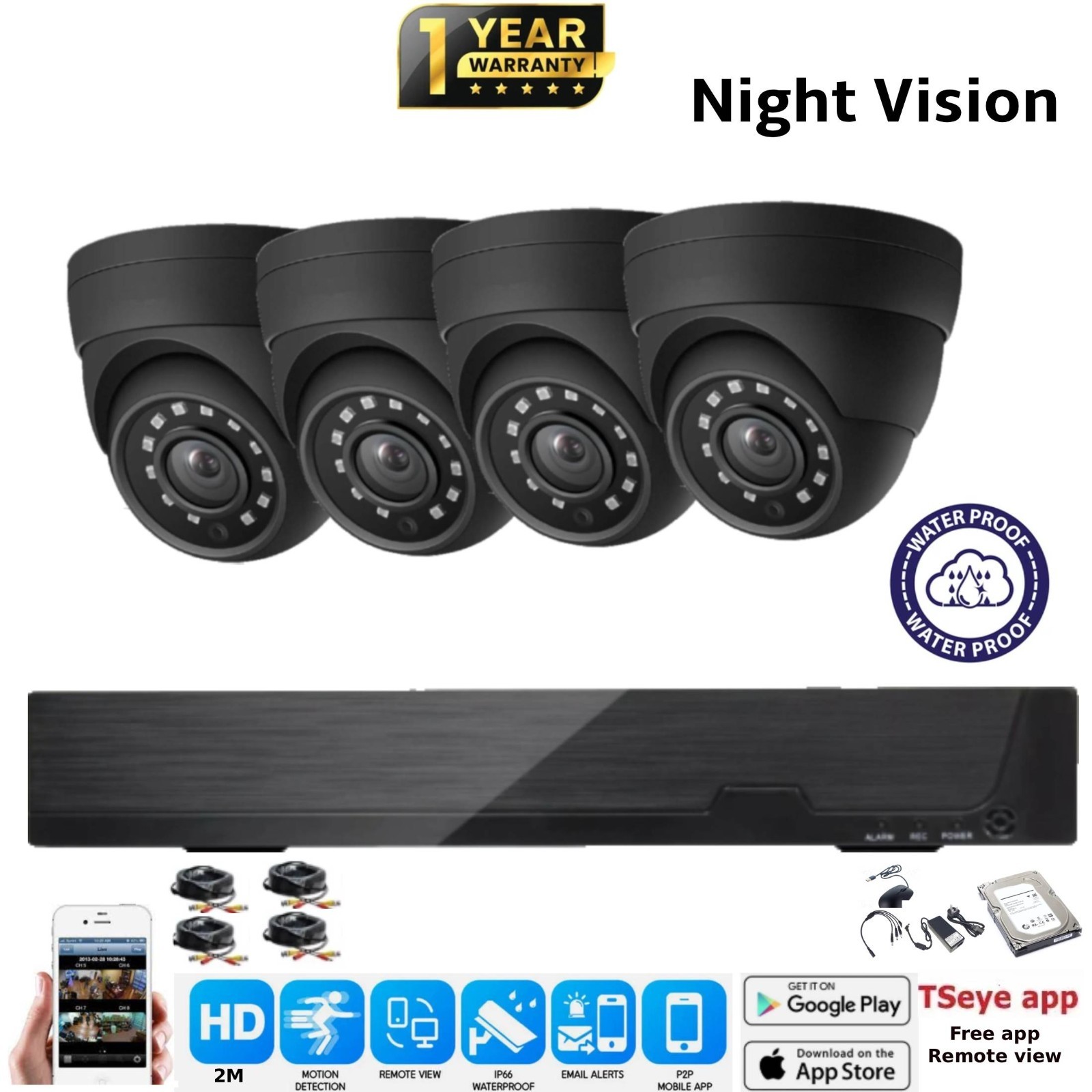 1080P HD CCTV Camera System 4CH DVR Home Outdoor Security Kit with Hard Drive UK