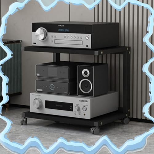 OUKEJNM Media Storage Cabinet, Audio Video Media Stand 2 3 Tier AV Media Stand, Movable Stereo Rack Audio Tower CD Player Stand, for Home/Office/Theater(Black,2 Tier-50x40x45cm)