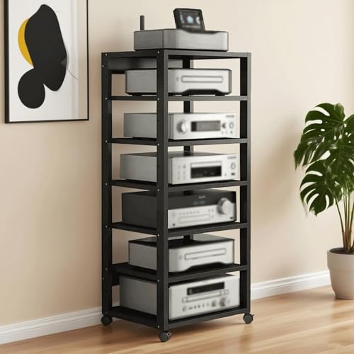 7-Tier Audio Rack Tower, Home Theatre CD Record Player Stereo Receiver Equipment Console, With Adjustable Shelves Weight Capacity 550 Lbs Easy to assemble for Home(Black)