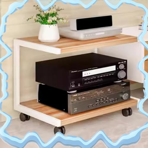 OUKEJNM Adjustable 2 3 4 Tier Movable Media Storage Cabinet, Wooden AV Media Stand, DVD CD Player Stand Amplifier Rack, Wooden Stereo Cabinet for Home/Office/Theater(2 Tier-high 50cm,Length-60cm)