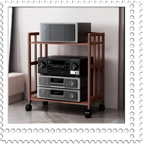 OUKEJNM Adjustable 2 3 4 Tier Movable Media Storage Cabinet, Wooden AV Media Stand, DVD CD Player Stand Amplifier Rack, Wooden Stereo Cabinet for Home/Office/Theater(2 Tier-high 75cm,Length-50cm)