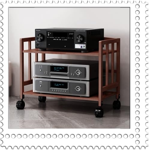 OUKEJNM Adjustable 2 3 4 Tier Movable Media Storage Cabinet, Wooden AV Media Stand, DVD CD Player Stand Amplifier Rack, Wooden Stereo Cabinet for Home/Office/Theater(2 Tier-high 75cm,Length-80cm)