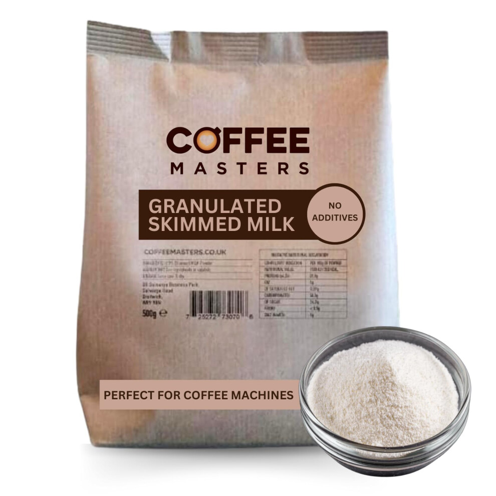 Coffee Masters Granulated Skimmed Milk Powder - 10 x 500g Dried Skim Powdered with No Additives - Perfect for Bean to Cup Espresso Machines and Home