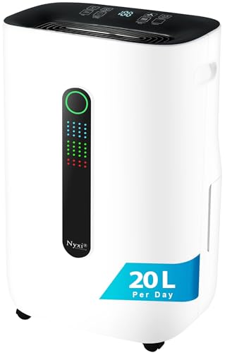 Nyxi 20L/Day Home Dehumidifier, Digital Humidity Sensor, XL 6.5L Water Tank
