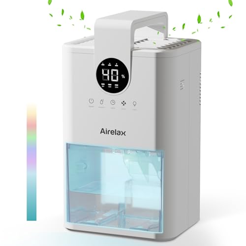 Airelax Dehumidifier 1000ml Portable Dehumidifiers for Home, Small Dehumidifier for Bedroom, 5 Touch Function Buttons & 7-Colour Night Light, Whisper-Quiet with Auto Shut Off for House, Bathroom, RV