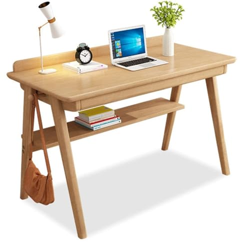 MGHRUE Desks Home Desktop Computer Student Writing Simple Bedroom Home with Drawers Solid Wood Table Legs,Wood,100cm