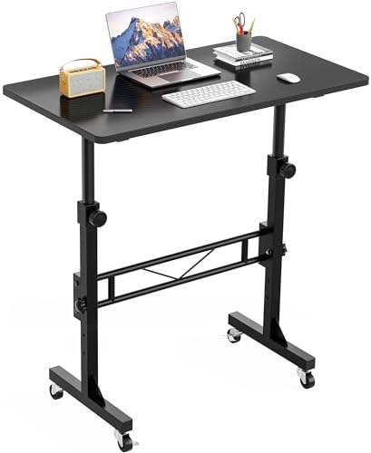 HOMIDEC Height Adjustable Standing Desk, 80x40cm Mobile Small Desk, Portable Home Office Computer Desks with Wheels, Modern Simple Style Desks for Bedroom, Living Room, Office, Black