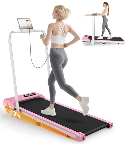 HomeFitnessCode Walking Pad Treadmill with Incline, 8km/h Under Desk Portable Treadmills for Home, Compact & Small, Ultra Quiet with LED Display, Remote Control (Pink)
