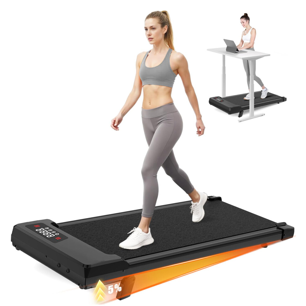 HomeFitnessCode Walking Pad Treadmill 8% Incline, Treadmills for Home, 3.0HP Portable Electric Under Desk Treadmill with LED Display & Remote, Adjustable Speed, No Assembly (Dark Black)