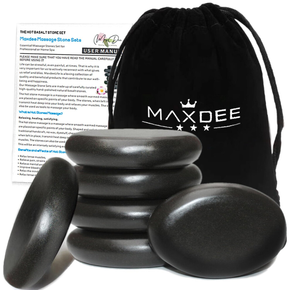 Maxdee Massage Stones Essential Hot Stones for Massage, 6 Large Hot Stones Massage Kit Hot Rocks Massage Stones for Professional or Home Spa, Foot Hea