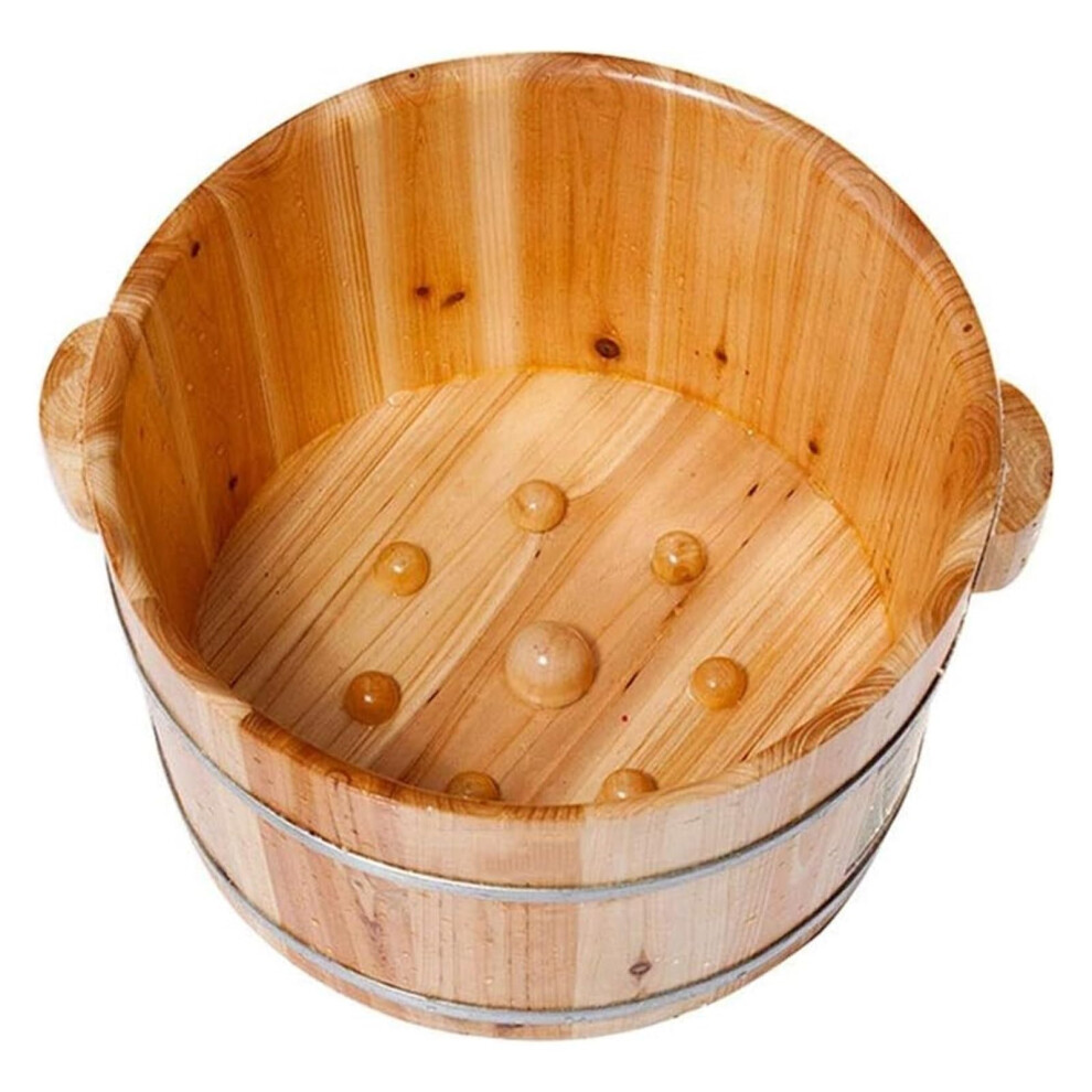 Foot Soaking Bath Basin with Thickened Walls, Wooden Pedicure Tub Made from Solid Wood with Galvanized Hoops, Massager and Lid for Home Foot Spa, High