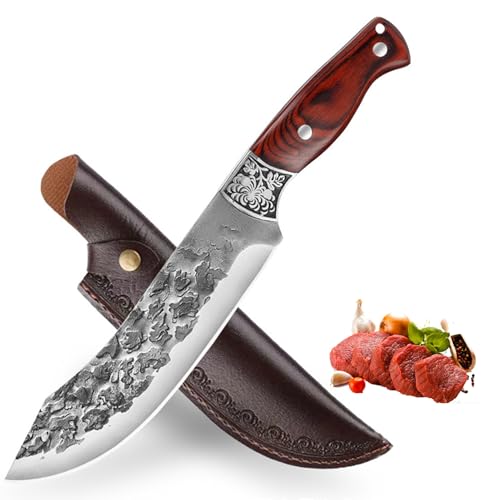 Fubinaty Chef’s Knife 7 Inch Japanese Handmade Forged Kitchen Knives Full Tang High Carbon Steel Cooking Knife Wooden Handle Vegetables Knife with Sheath for Home and Grill