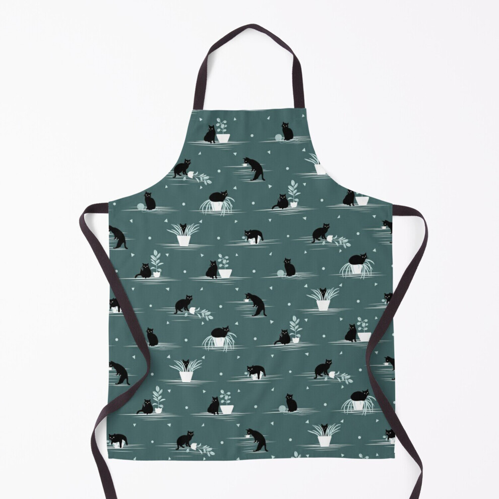 When the Black Cat is Alone at Home (Dark Green) Grill Aprons for Kitchen BBQ Chef