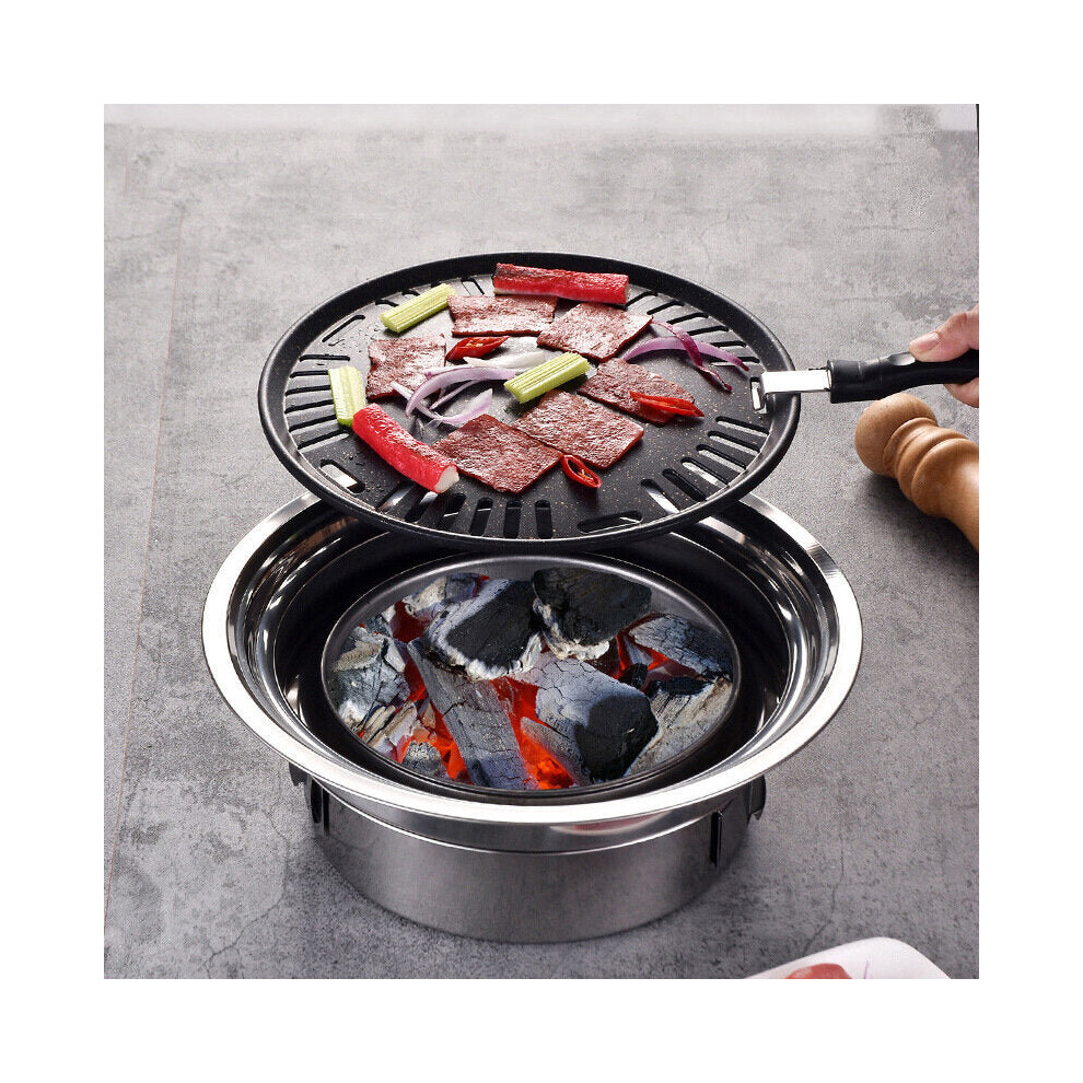 (L) 7PCS/Set Stainless Steel Korean Charcoal Barbecue Grill Home/Outdoor Camping Portable Smokeless Barbecue Stove