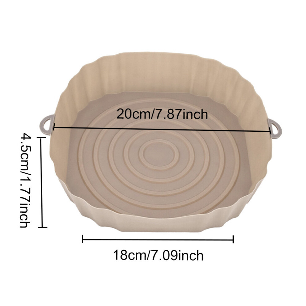 (Beige) Air Fryer Silicone Pot Baking Tray 3 Size Non Stick Ultra Thin Reusable Heat Resistant Pizza Mat Home Kitchen Grill Accessories