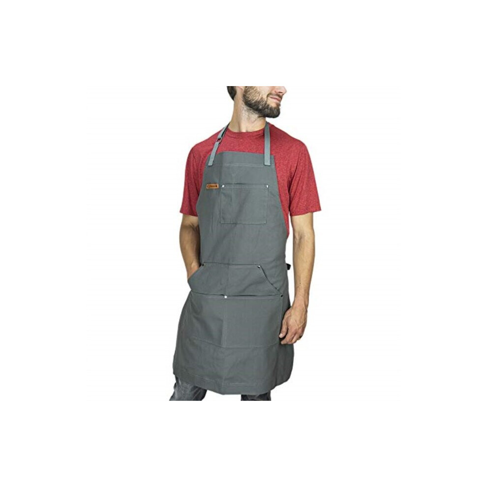 Chef Pomodoro Chef Apron - Top Recommended - Adjustable Pockets Bibs - Designed for Home Kitchen BBQ Grill Use (Stone Grey)