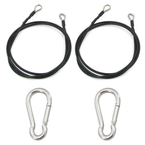 Buaak Gym Extension Cable, Home Gym Accessories, Gym Attachments, Tricep Rope, 2pcs 2mm 304 Rubber Coated Steel Wire Rigging Cable and 2pcs M6 Carabiner for Fitness, Tool Fall Protection