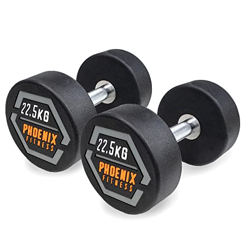 Phoenix Fitness Rubber Coated Cast Dumbbells - Fixed Weight for Fitness & Strength Training, Lifting & Bodybuilding - Ideal for Home Gym, Commercial Gym, Studio - Sold as Pairs, 22.5kg