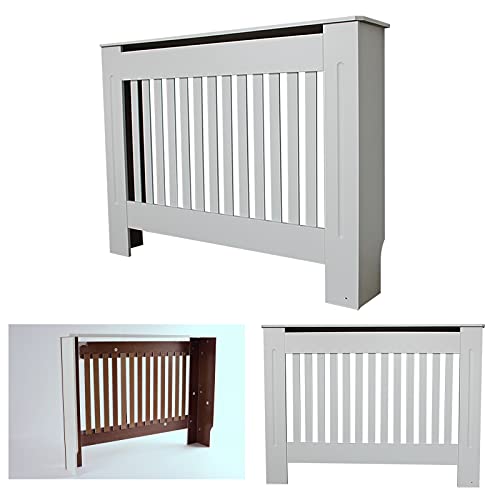 Radiator Cover Enclosure Shelf Unit for Home, Vintage Heater Concealer with Durable Panel, Easy Assembly for Steam & Metal Systems, Multiple Sizes(Matchsticks and sto white 35.4*27.6*5.9in/90*70*15cm