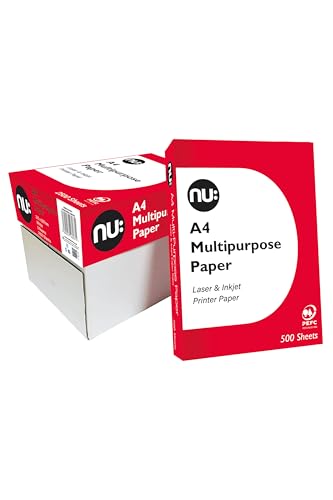 nu: A4 Multi-Purpose Printer Paper, White, 500 Sheets, Smooth Surface, Suitable for Inkjet, Laser & Copier Use, Ideal for Home & Office, 5 Reams
