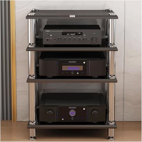 4 Tier Wooden o Rack Ste AV Stand HiFi Equint Cabinet Open Back Design for o Video Shelving (Nero) Perfect for Home Theater & Music Systems