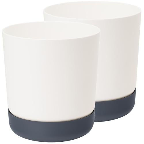 Home Garden Ornaments – Large Plant Pots Indoor, Set of 2 Plastic Outdoor Planters with Drainage & Saucer, Classy Flower Pots (25cm / 9.8 inch, White)
