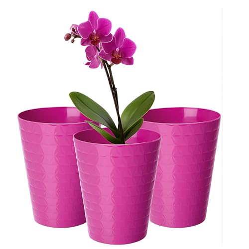 Home Garden Ornaments Plant Pots Indoor Orchid Pots 3 Pcs Glossy & Pearly Look Durable Indoor Plant Pot for Plants & Flowers (13 cm / 5.1 inch Pink Fuchsia)