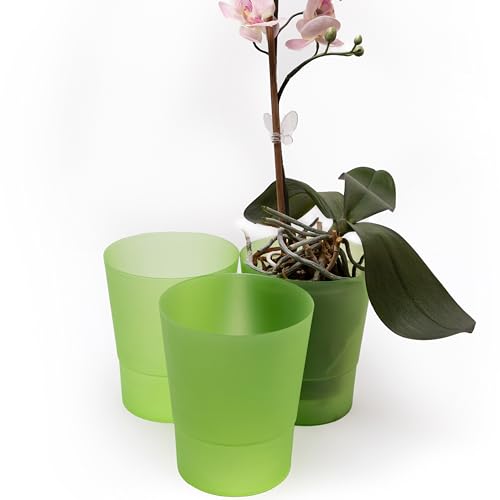 Home Garden Ornaments Orchid Pots, Flower Planter - Decorative Semi Transparent Plastic Orchid Pot with Inner Cone for Hydration, Set of 3 (Diameter: 12cm, Colour: Green)