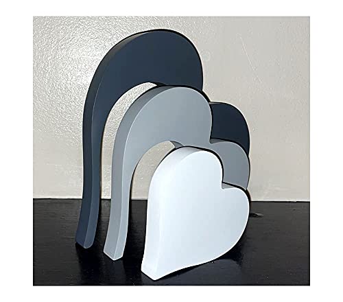 Wooden Love Hearts Home Decorations Pack of 3 – Dark Grey, White & Grey Living, Bedroom, Dining Room or Hallway Shelf Decor – Hotel & Home Ornaments – House Decoration Gift Ideas