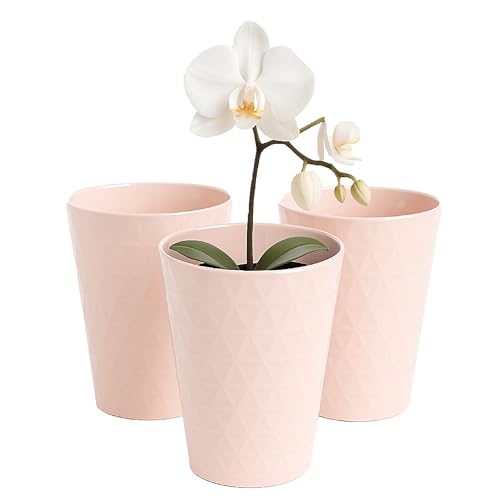 Home Garden Ornaments Plant Pots Indoor Orchid Pots 3 Pcs Glossy & Pearly Look Durable Indoor Plant Pot for Plants & Flowers (13 cm / 5.1 inch Pink)