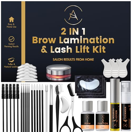 Lash Lift & Eyebrow Lamination Kit, 2-in-1 Solution, At Home Brow Lamination, Beginner/Professional, Eyelash Lift Kit, Lasts 6-8 Weeks, 15 Applications, DIY Brow - Lash Perm - ABLK1